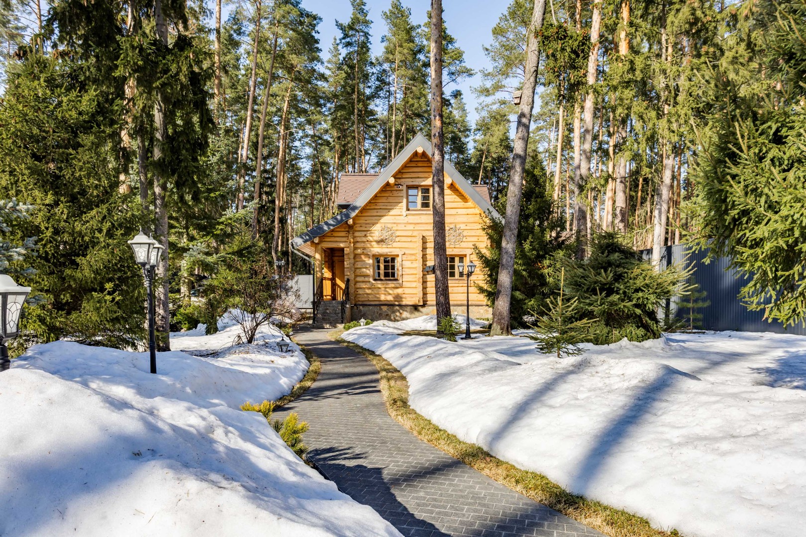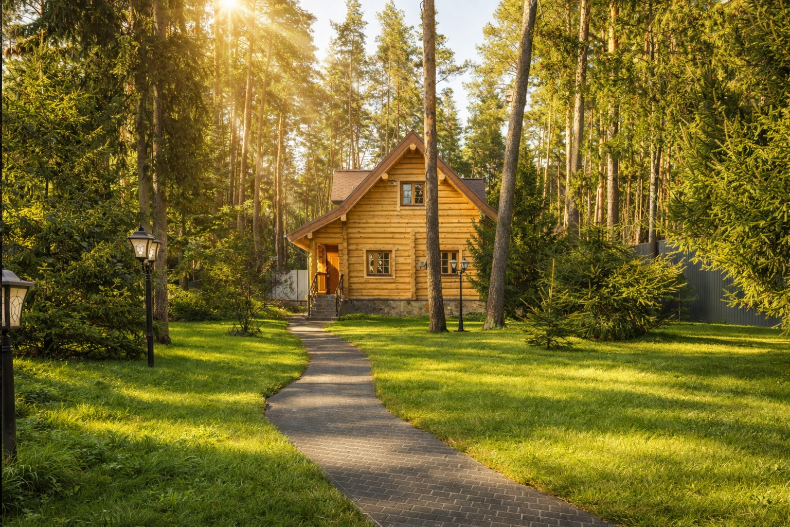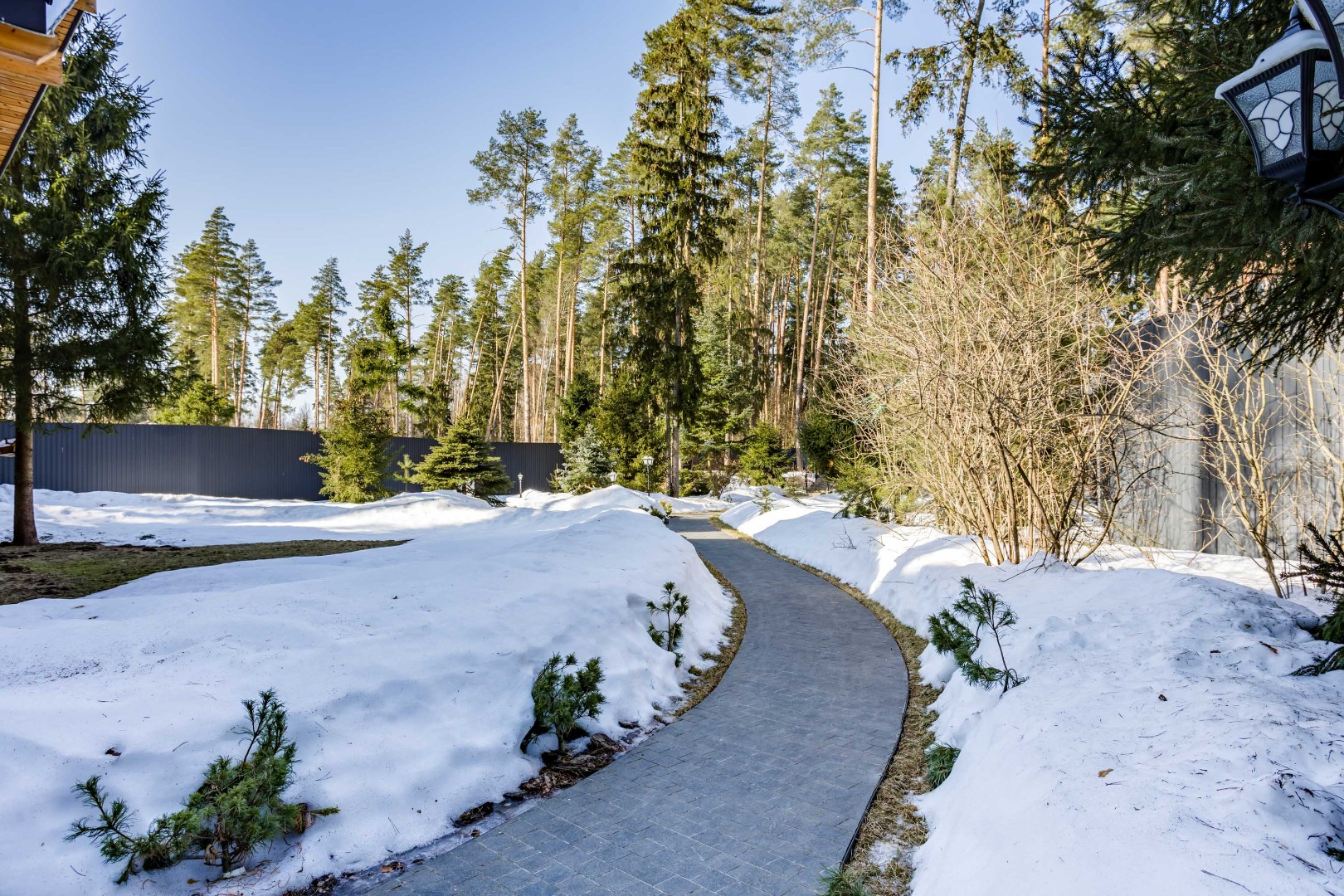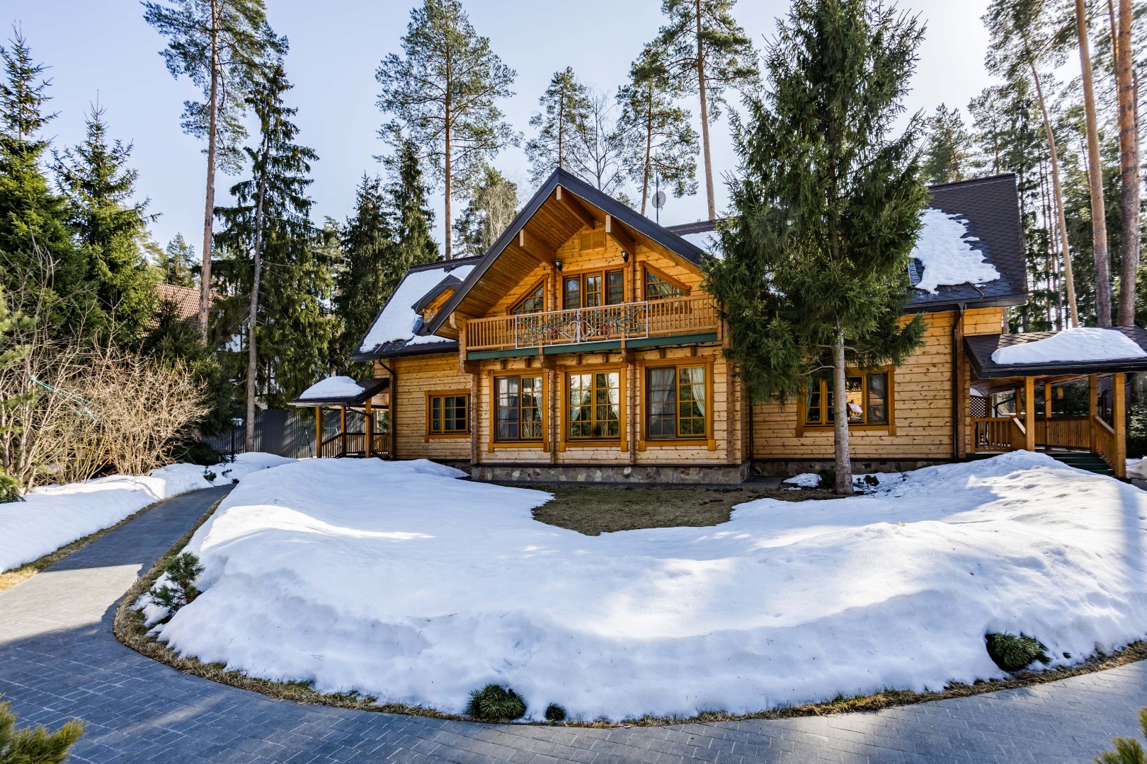 Участок с вековыми соснами площадью 23 сотки — это настоящий оазис. На нем выполнен дренаж, ландшафтный дизайн, высажены цветы, а дорожки оснащены освещением. Также на участке имеются гараж на два автомобиля с мойкой и гостевой дом, что делает его идеальным местом для комфортной жизни и отдыха.