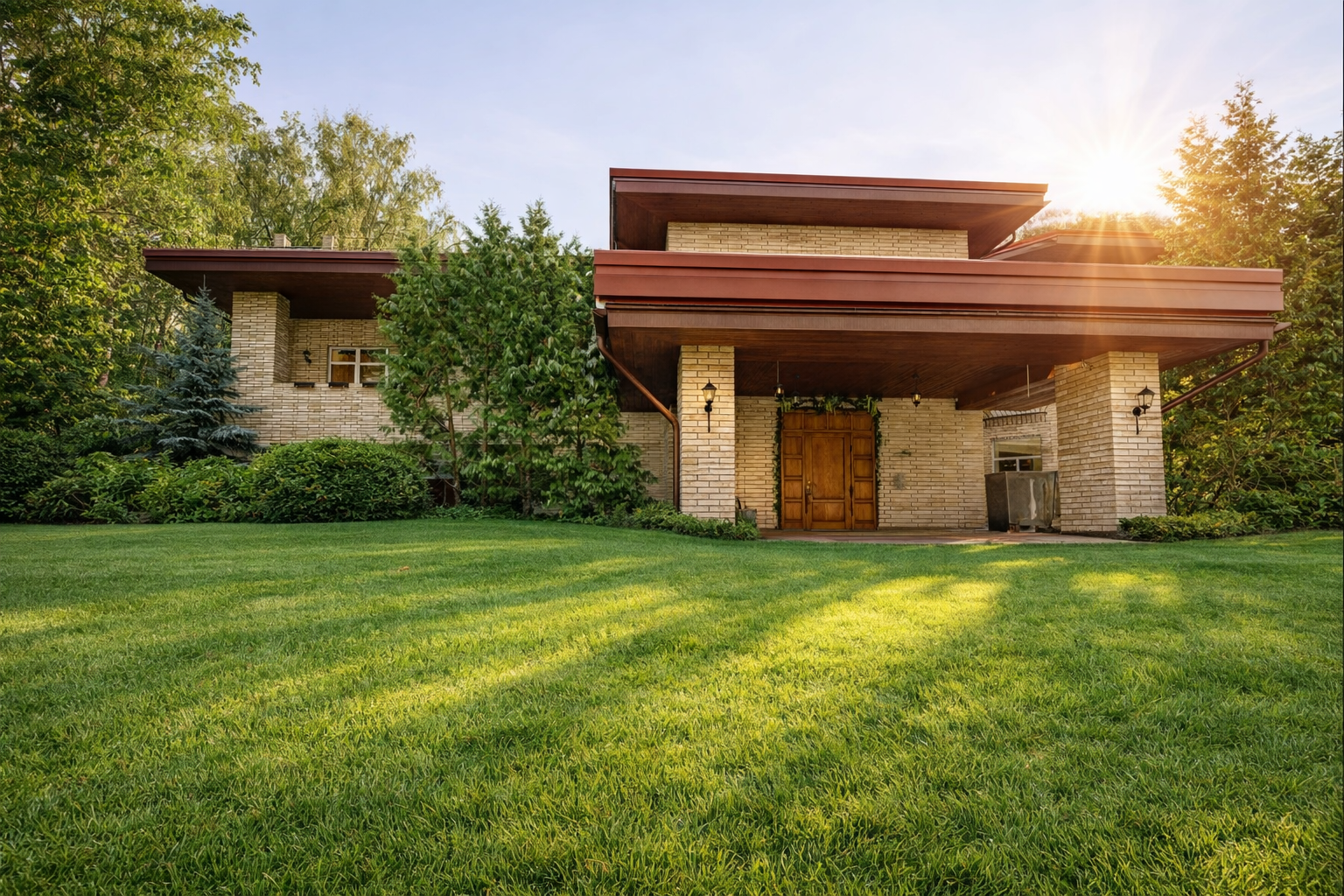 Загородный дом в окружении леса.