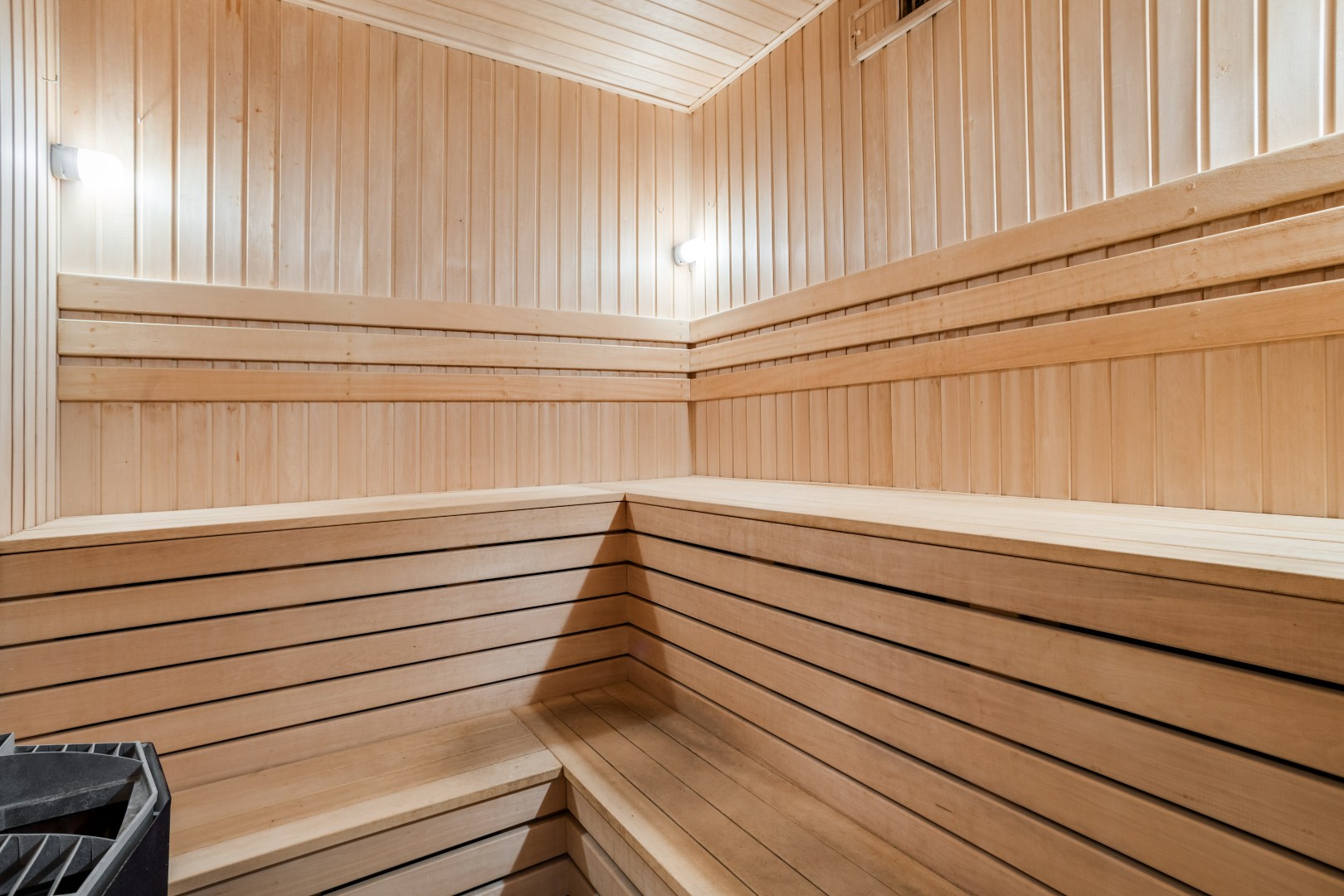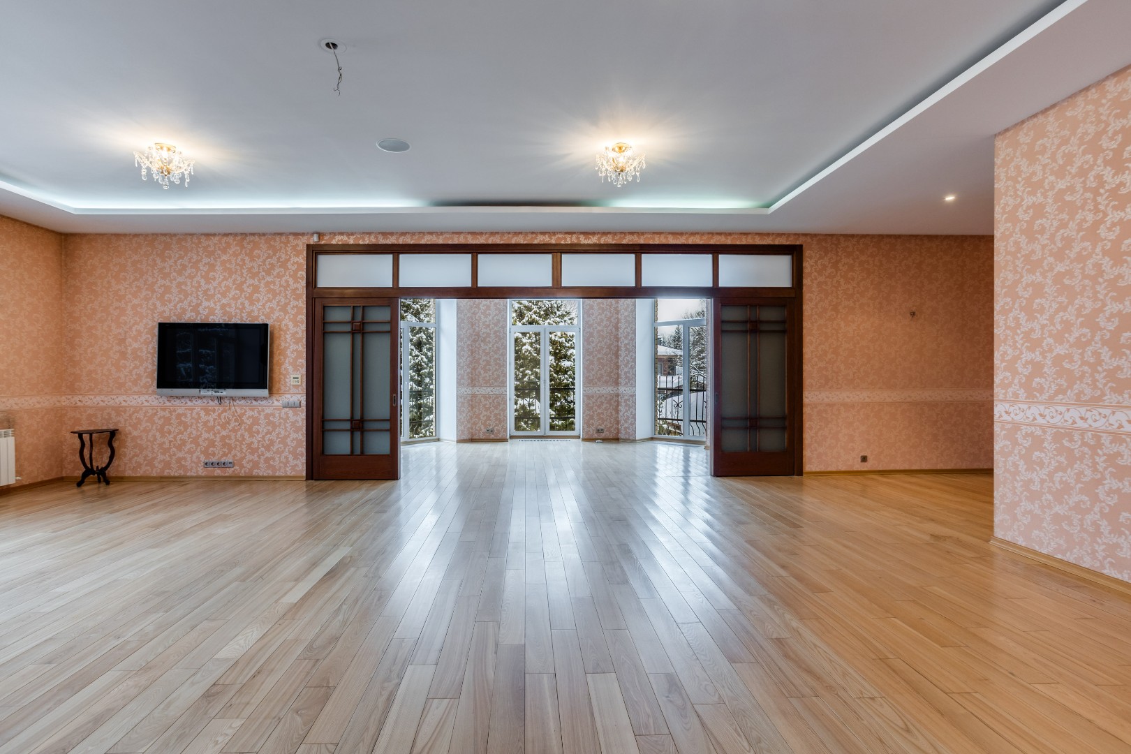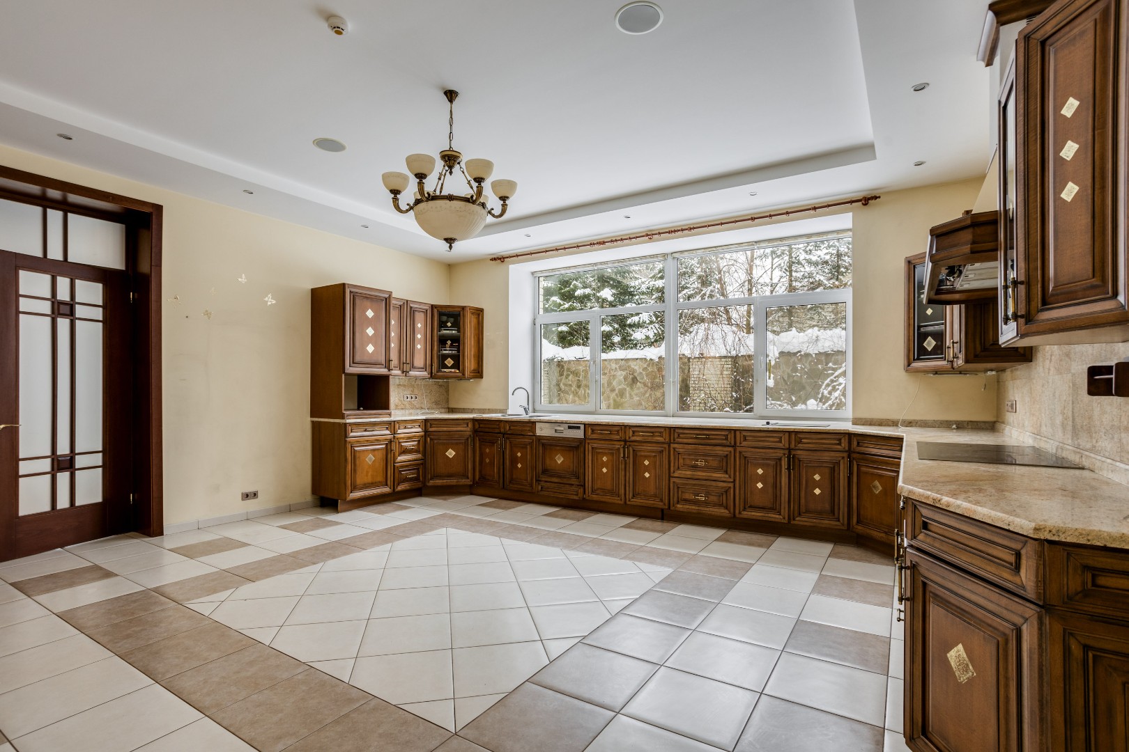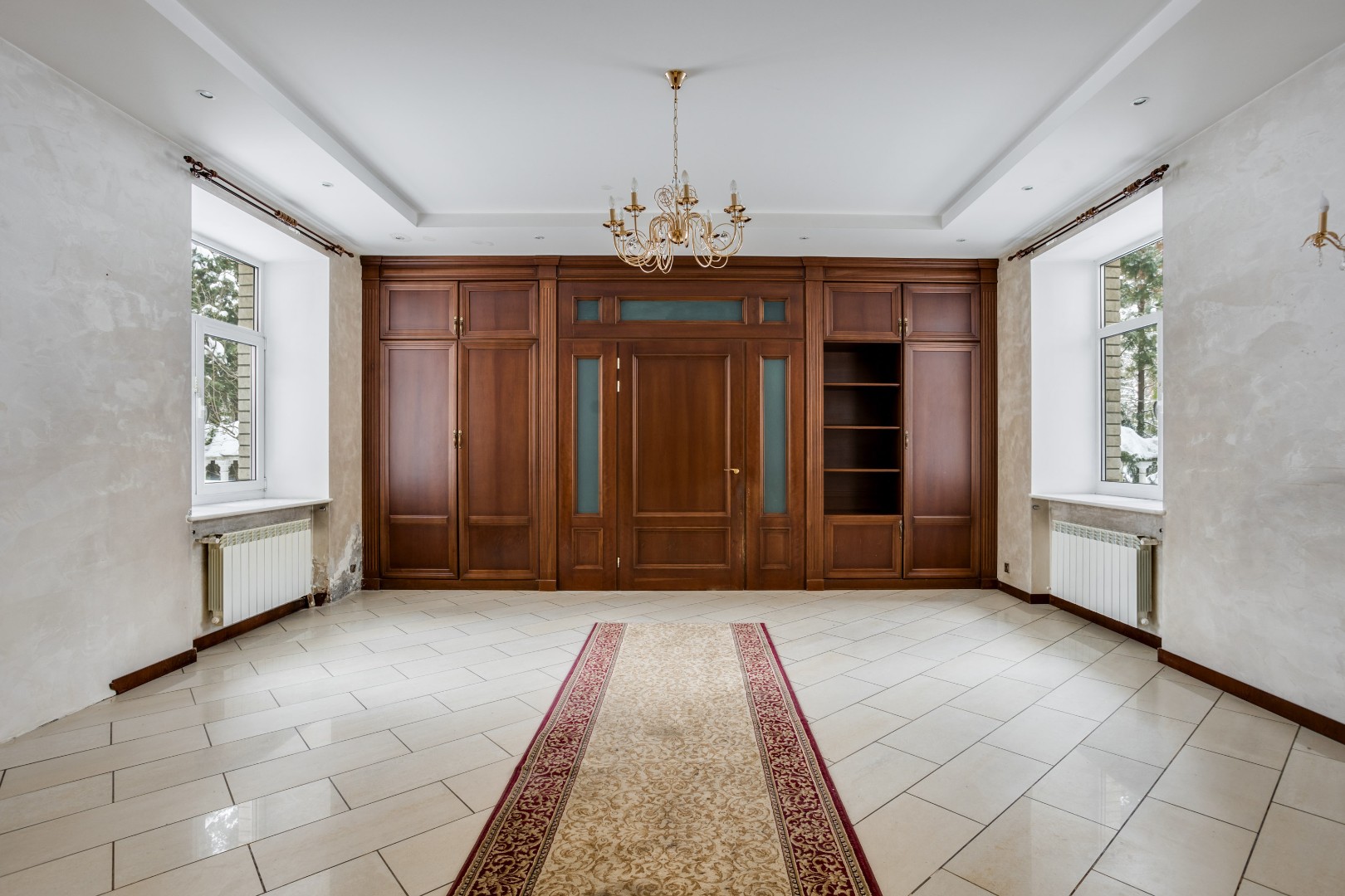 В доме выполнена отделка по индивидуальному проекту, в классическом стиле с использованием теплых оттенков, фактуры камня и дерева. Благодаря большим окнам в пол пространство наполнено воздухом и светом. Цокольный этаж предусматривает отдельные помещения для персонала. Все коммуникации - центральные: газоснабжение, электроснабжение, холодное водоснабжение, канализация. В собственности резидентов — 9 гектаров леса с прогулочными дорожками и велодорожками, зонами барбекю и приватными рекреационными пространствами.