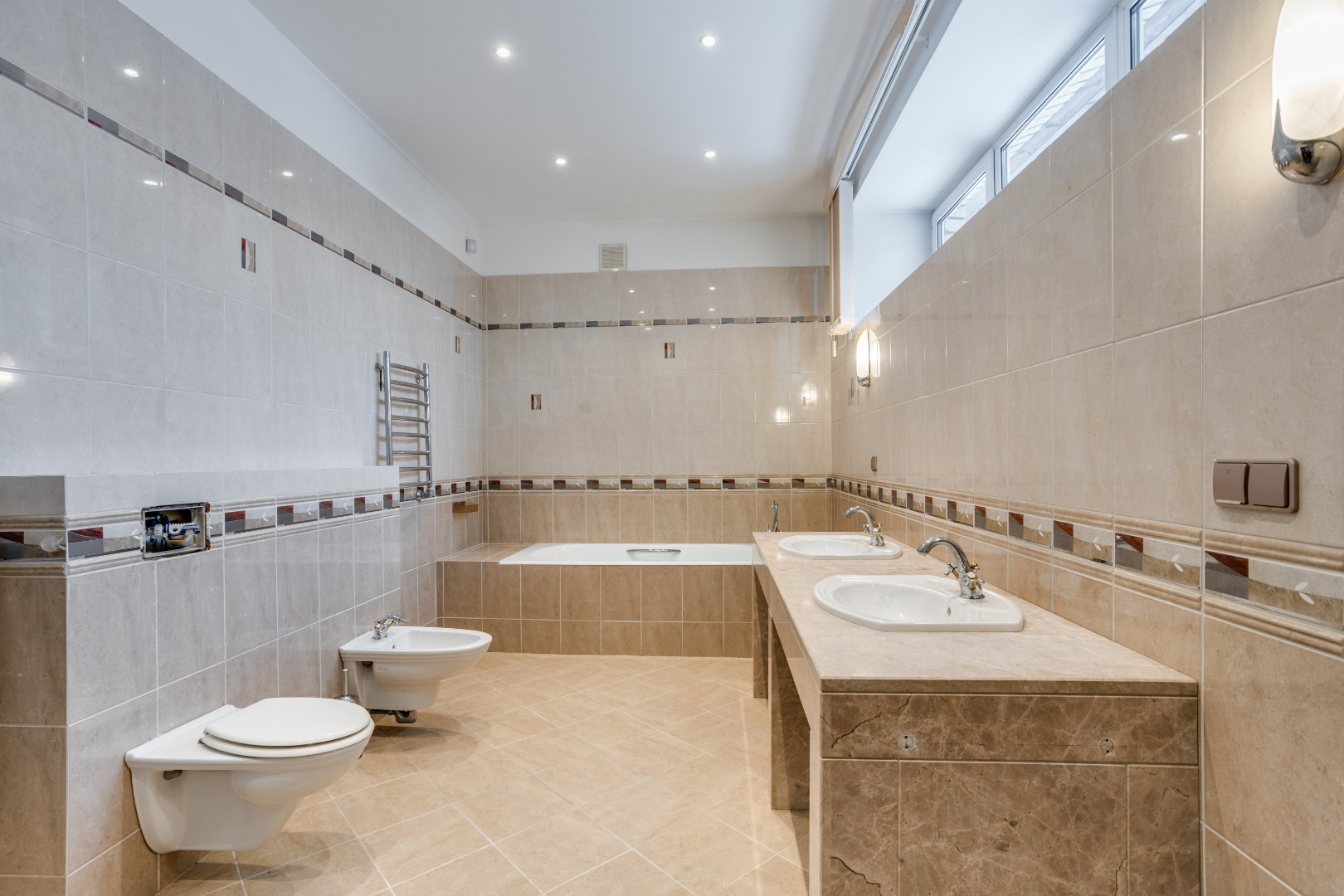 2 этаж: 4 спальни со своими ванными комнатами и гардеробными.