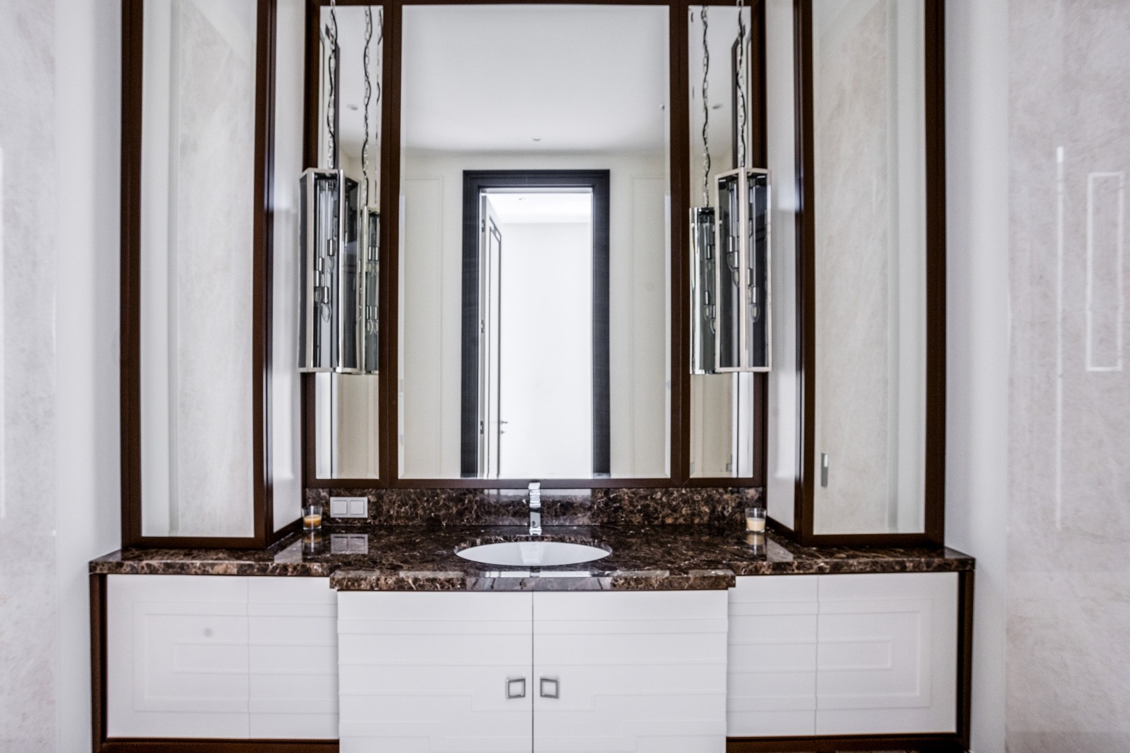 Три спальни с гардеробными, санузлами и балконами, где можно создать собственные уголки для семьи.