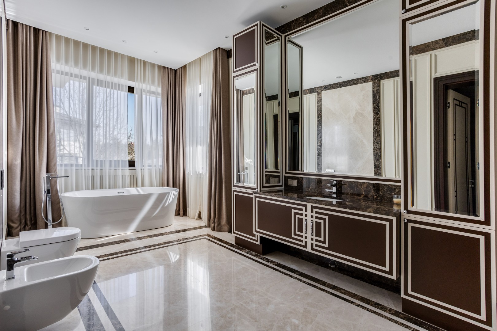 Кабинет или спальня с гардеробной и собственным санузлом — идеальное место для работы или отдыха.