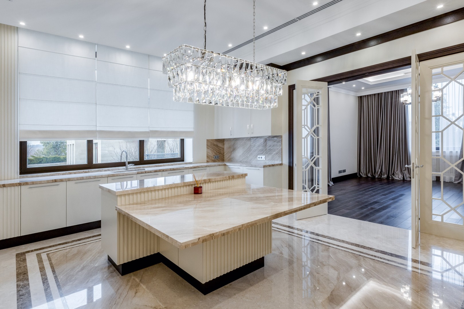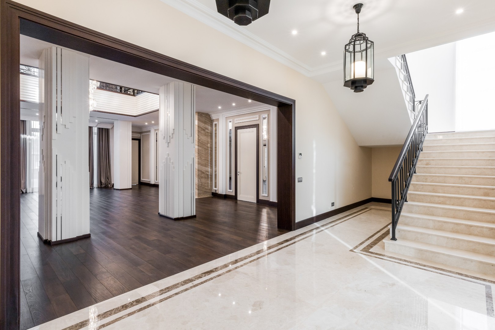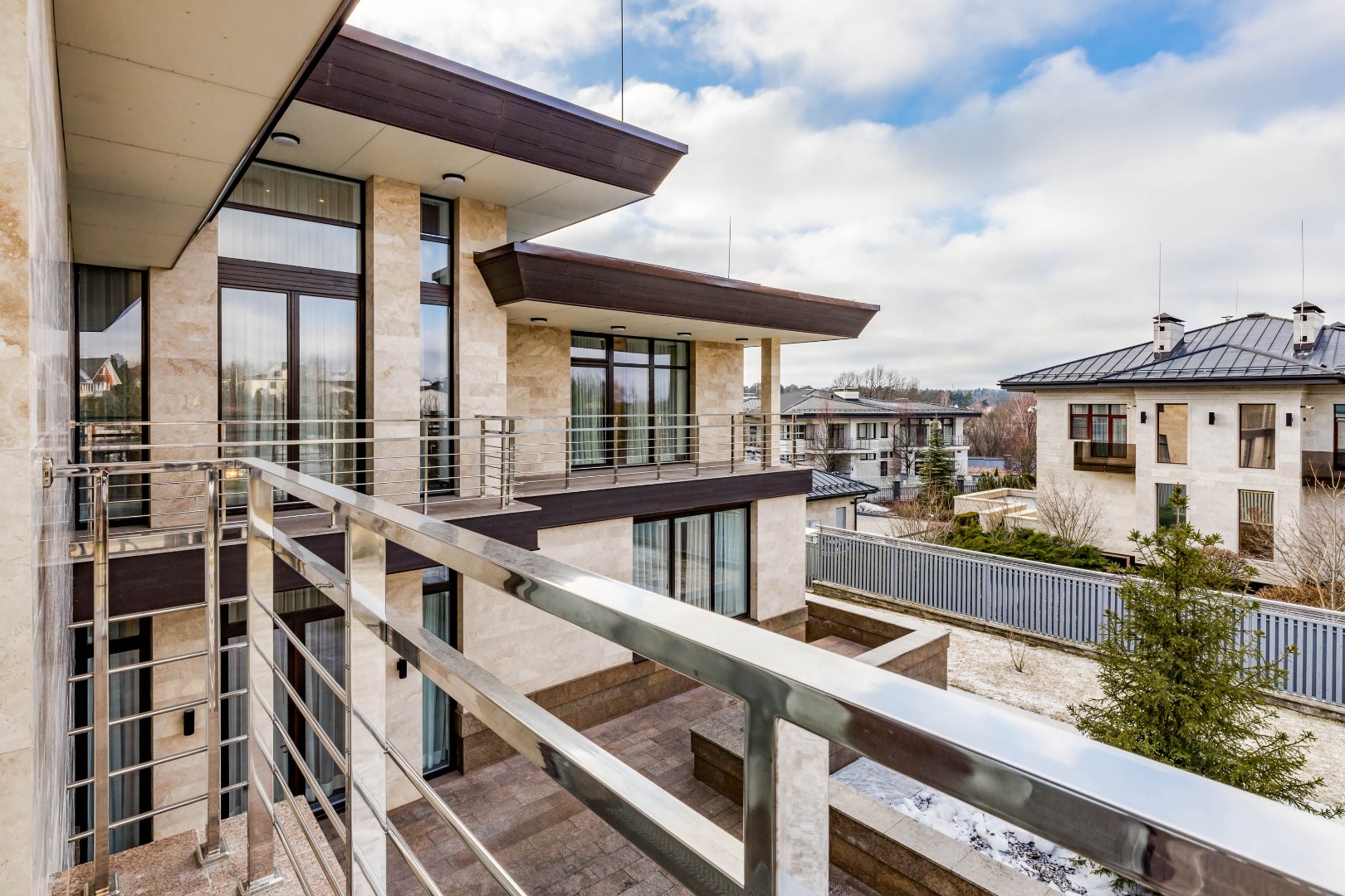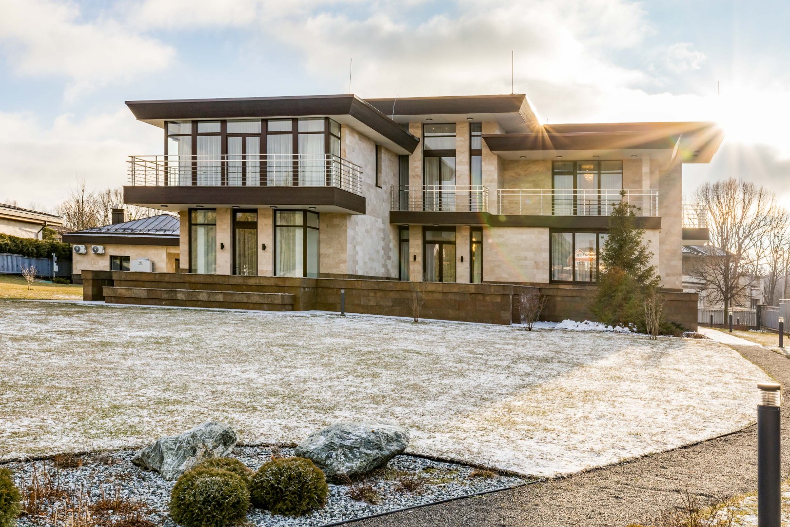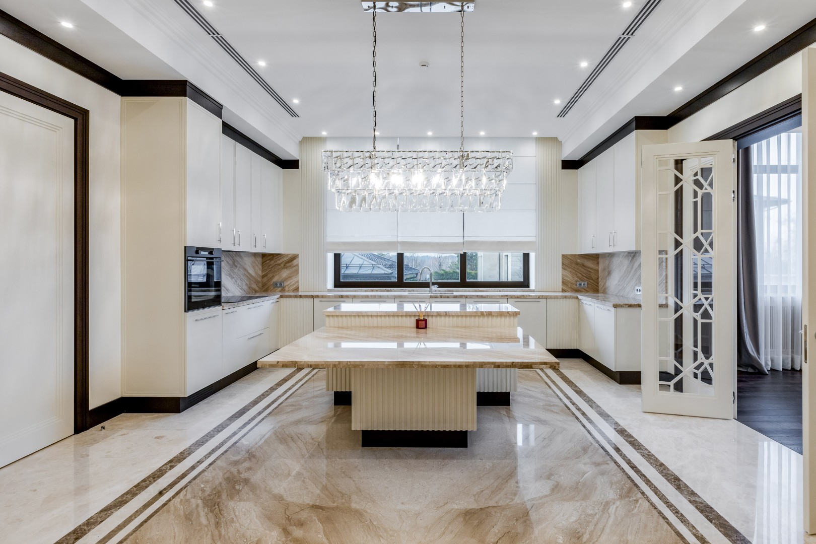 Каждая деталь в этом доме выполнена с исключительным вкусом: фасад отделан натуральным травертином, а декор интерьера создавался по индивидуальному заказу ведущими европейскими фабриками.