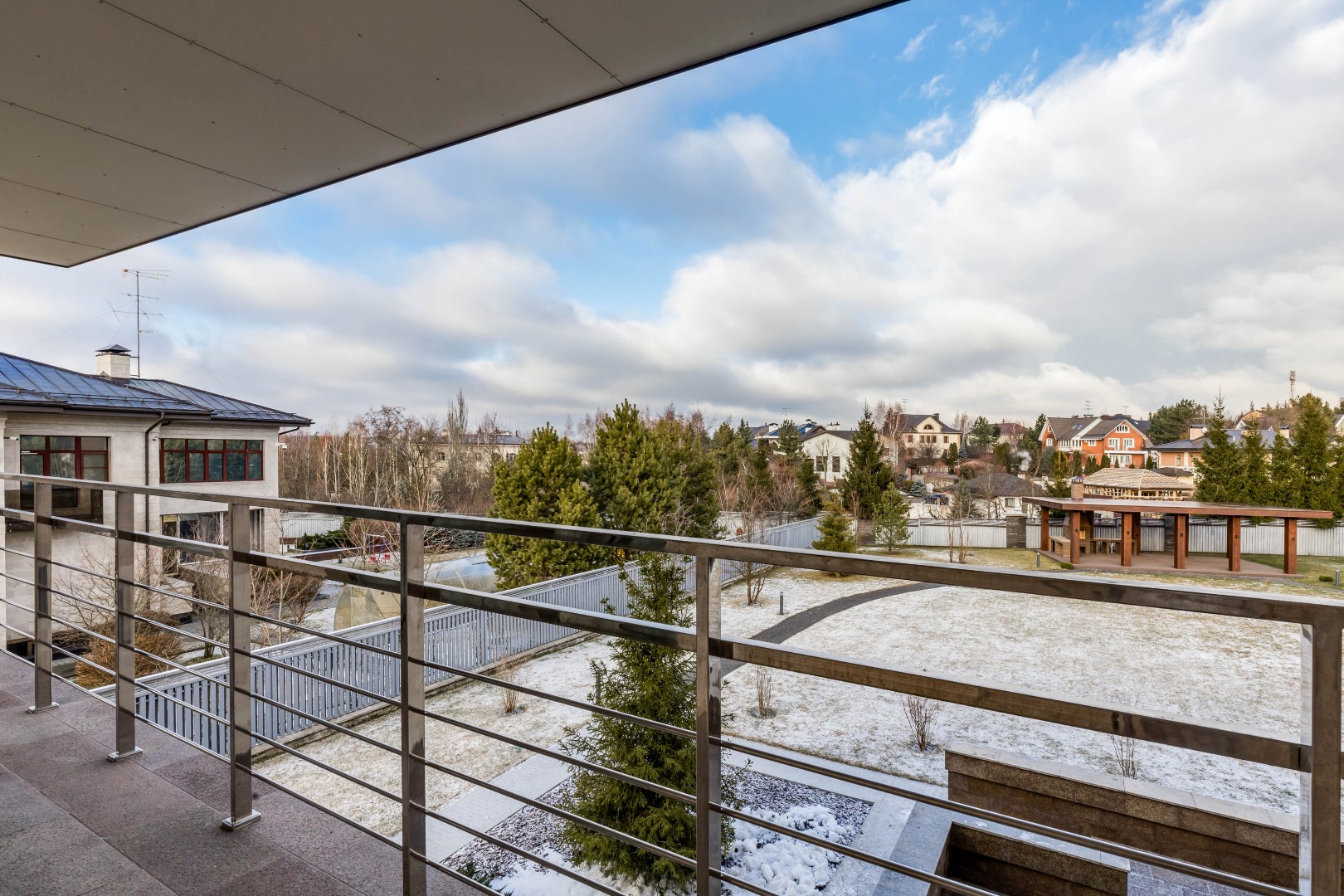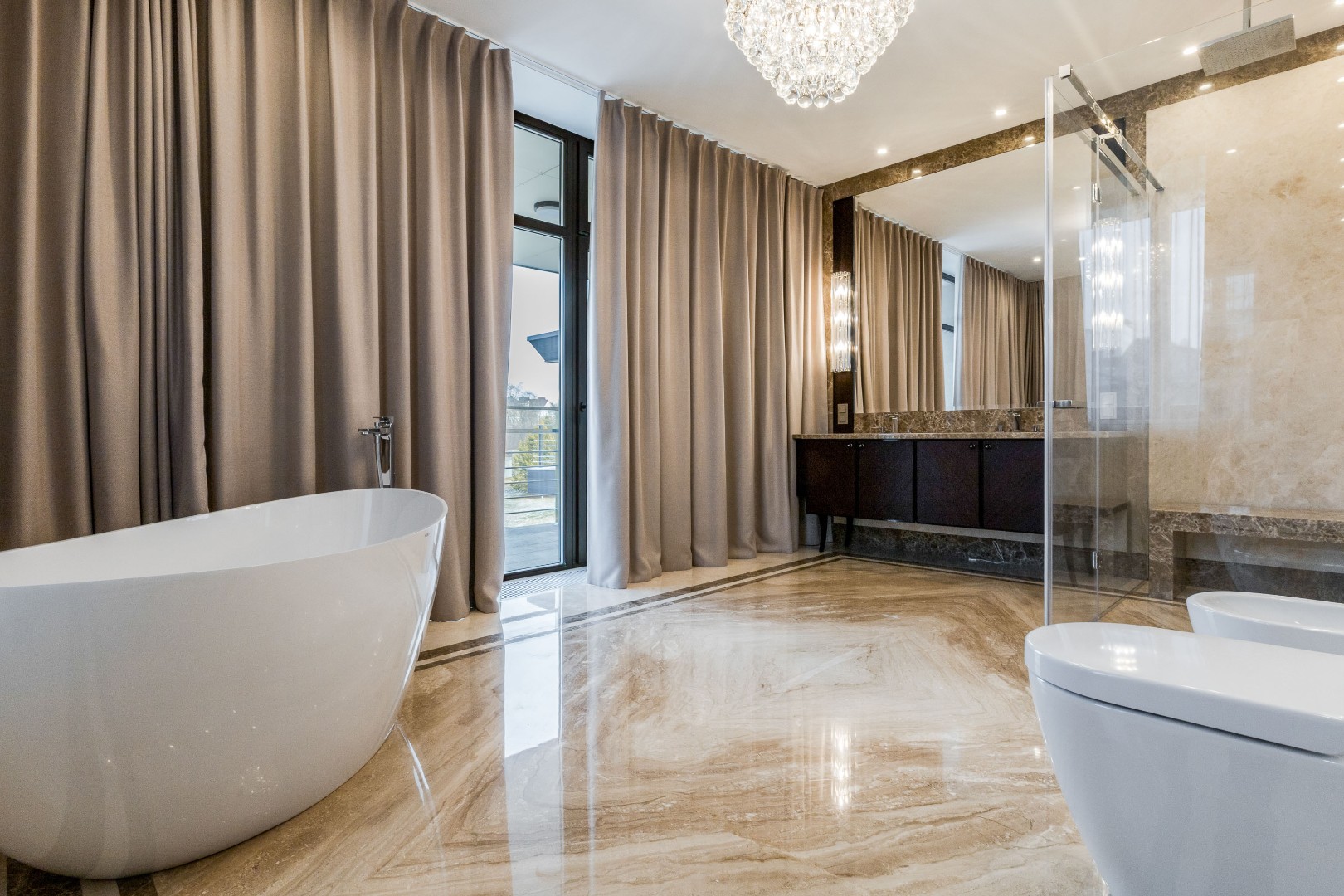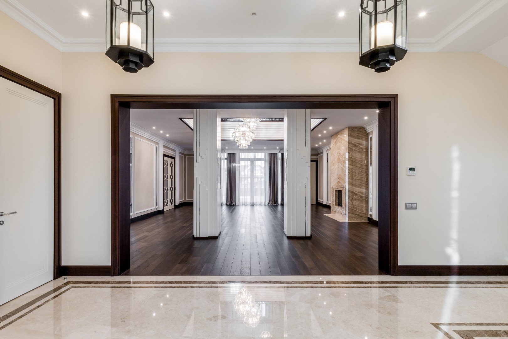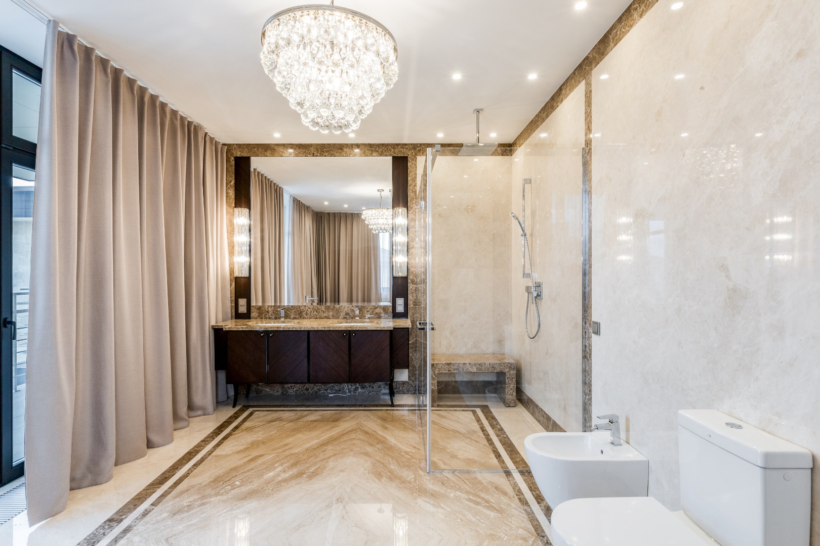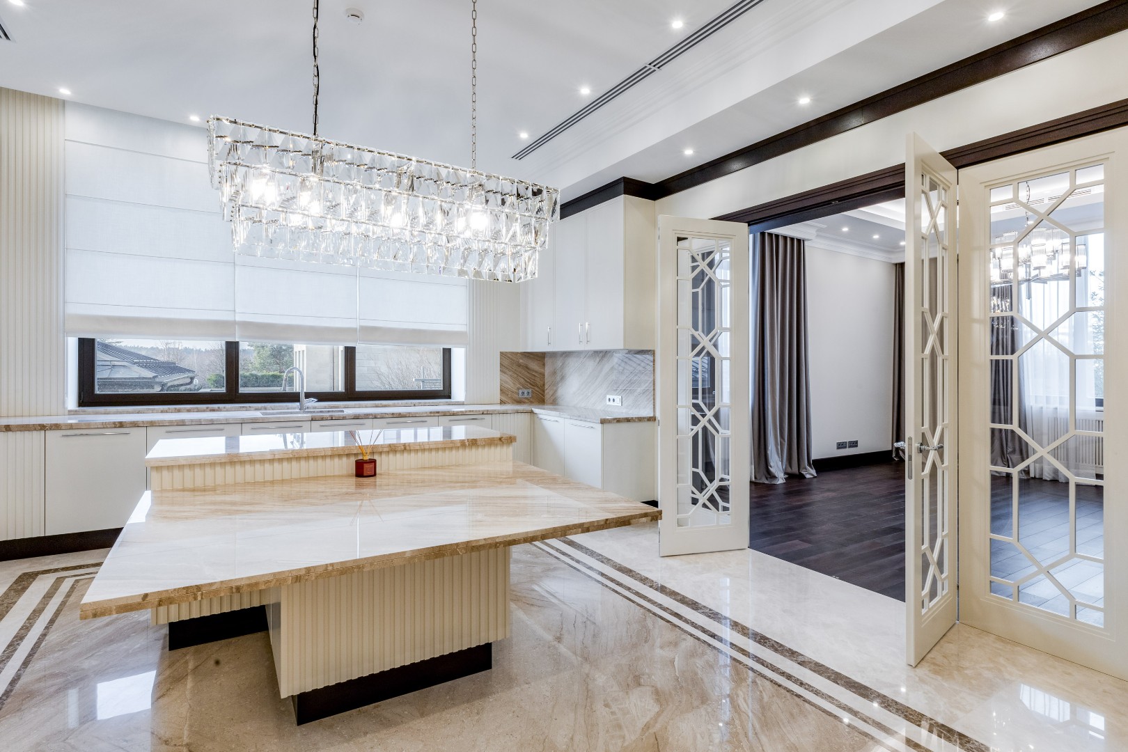 Каждая деталь в этом доме выполнена с исключительным вкусом: фасад отделан натуральным травертином, а декор интерьера создавался по индивидуальному заказу ведущими европейскими фабриками.