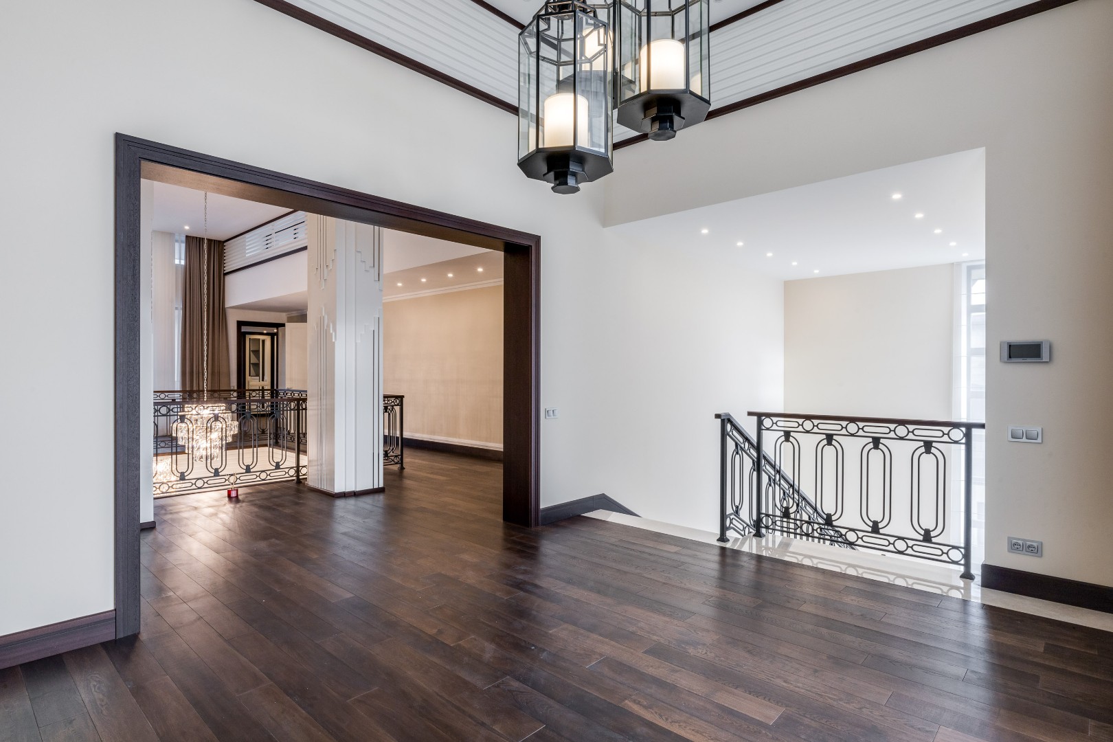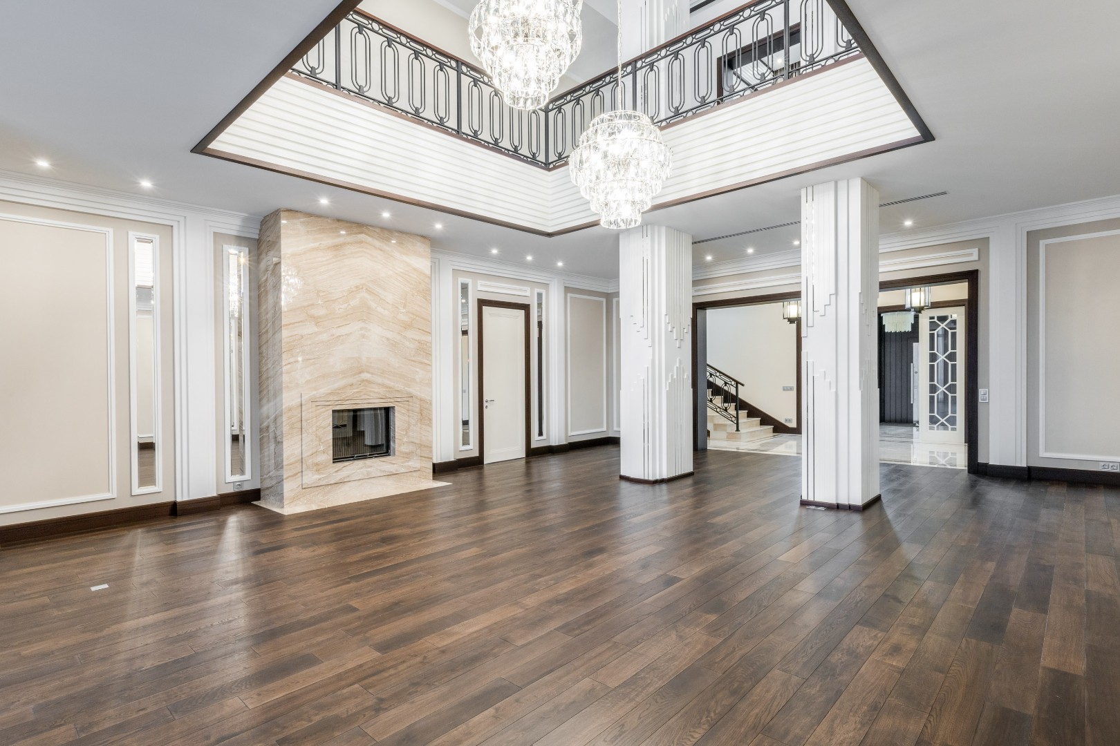 2 этаж: роскошная мастер-спальня с гардеробной, ванной комнатой и двумя балконами, две спальни с гардеробными и санузлами, спальня с гардеробной и санузлом, лаундж-холл с балконами для отдыха и общения.