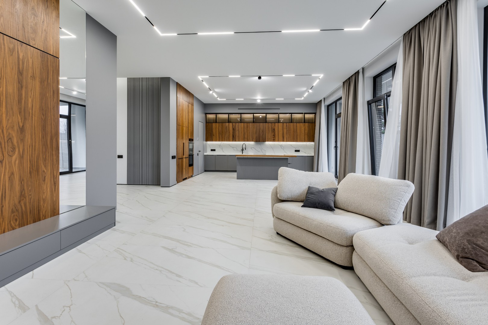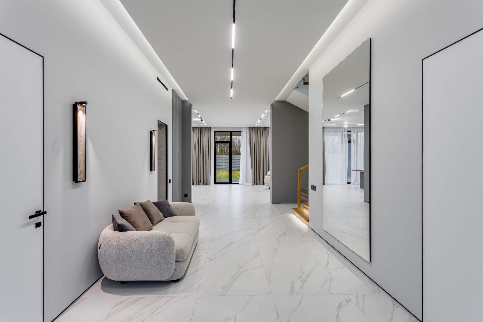 Новый современный дом в охраняемрм коттеджном поселке в близи платной дороги. В доме реализован современный интерьер с базовой комплектацией дизайнерской мебели, оставили возможность индивидуальной доработки дизайна при поддержке профессиональных декораторов, установлены качественные сантехнические приборы от известных брендов и предусмотрено отдельное помещение для обслуживающего персонала, панорамное остекление от пола до потолка создает ощущение простора и наполняет помещения естественным светом, собственная сауна для полноценного отдыха и релаксации, терраса и балконы для комфортного времяпрепровождения на открытом воздухе, а наличие центральных коммуникаций (газ, электричество, водоснабжение, канализация) обеспечивает комфортное проживание в любое время года.