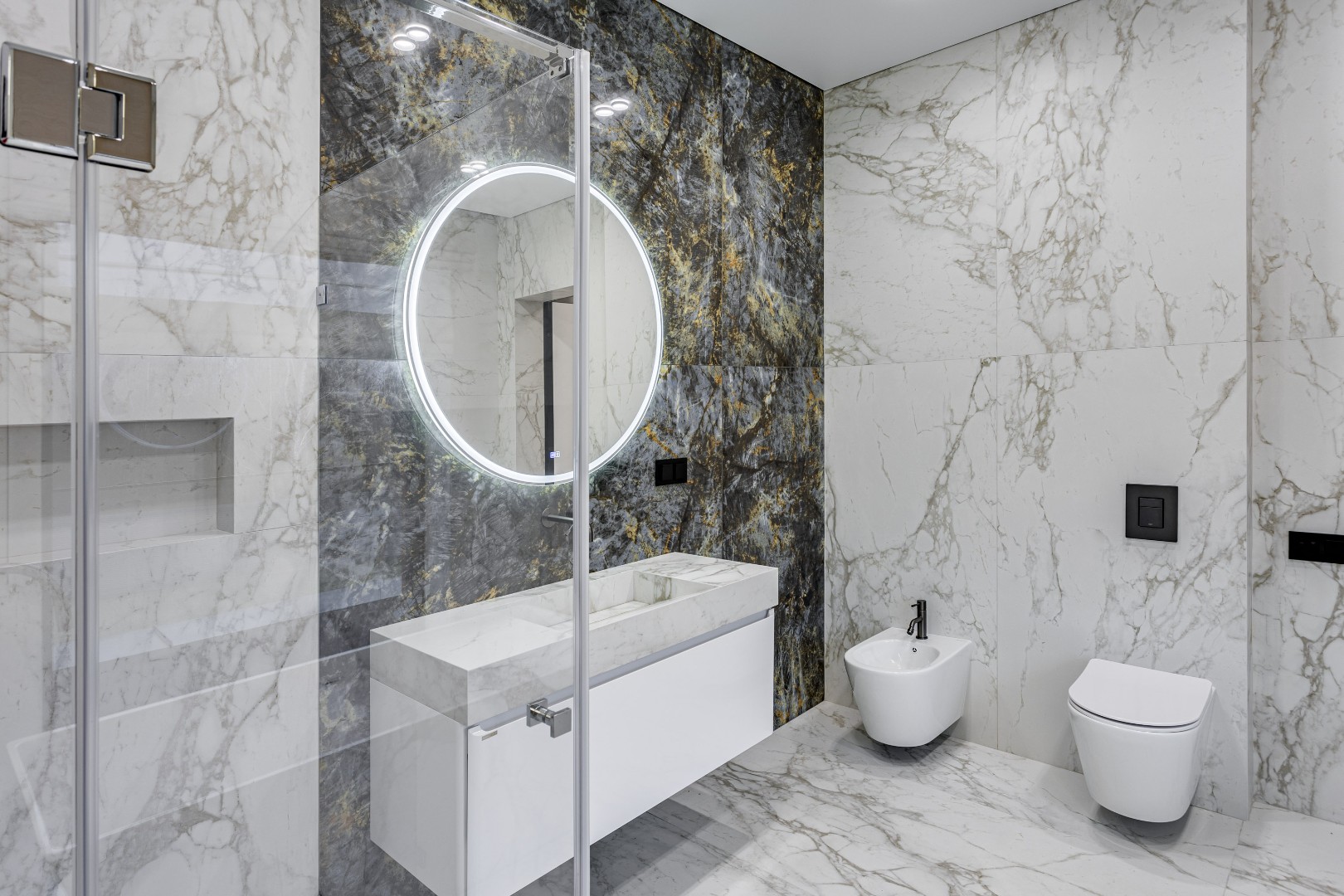 1 этаж: прихожая, холл, гардеробная, спальня с гардеробной и санузлом, санузел, котельная, постирочная, кухня, гостиная, столовая, терраса, СПА-комплекс, душевая, сауна, санузел, гараж на 2 машиноместа.