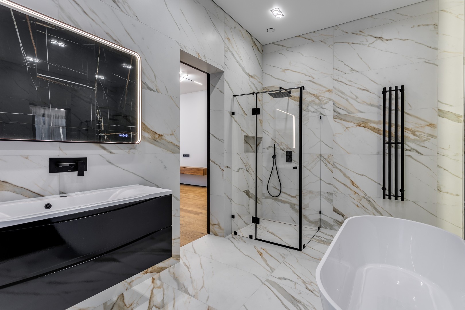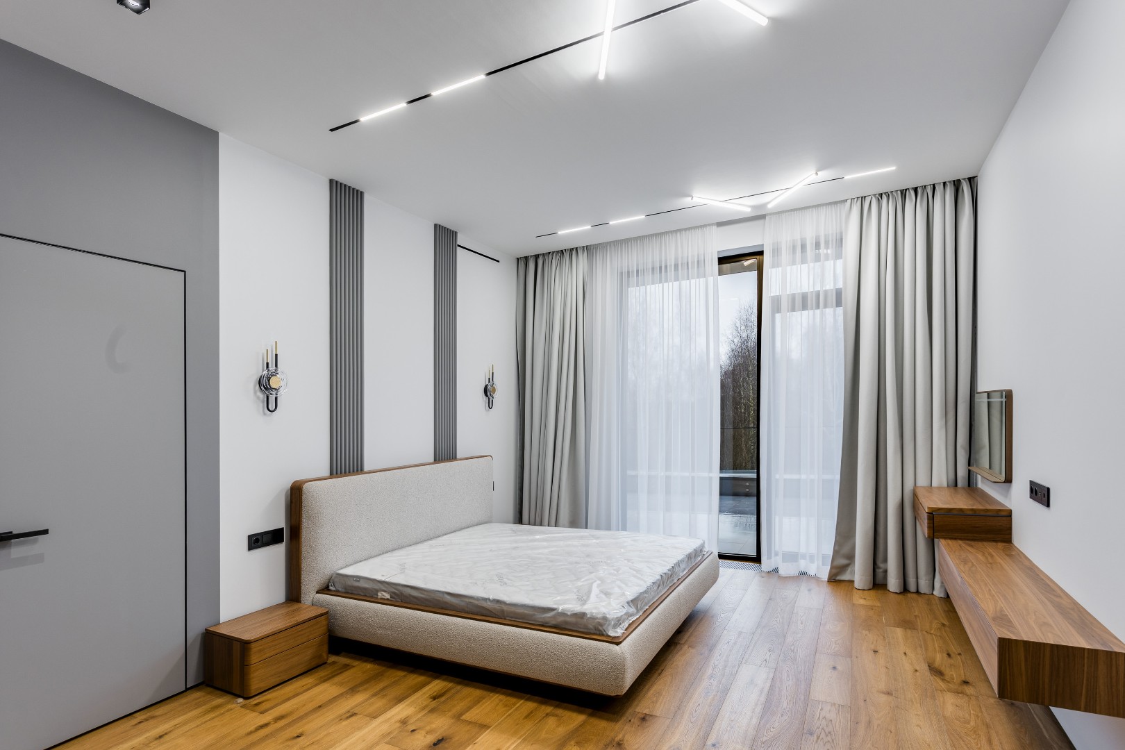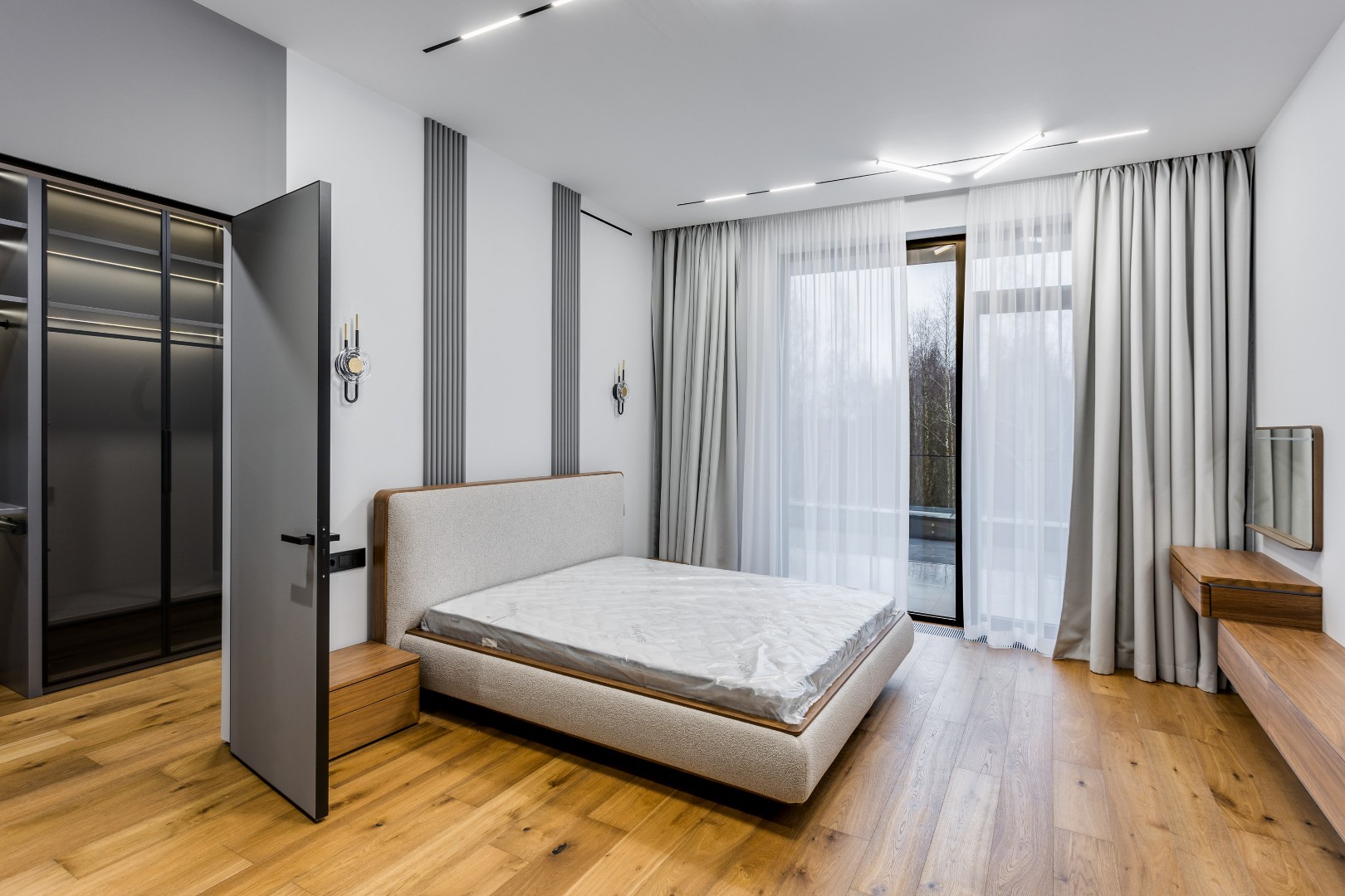2 этаж: холл, мастер - спальня с санузлом и гардеробной, три спальни с гардеробными и ванными комнатами, балкон, терраса