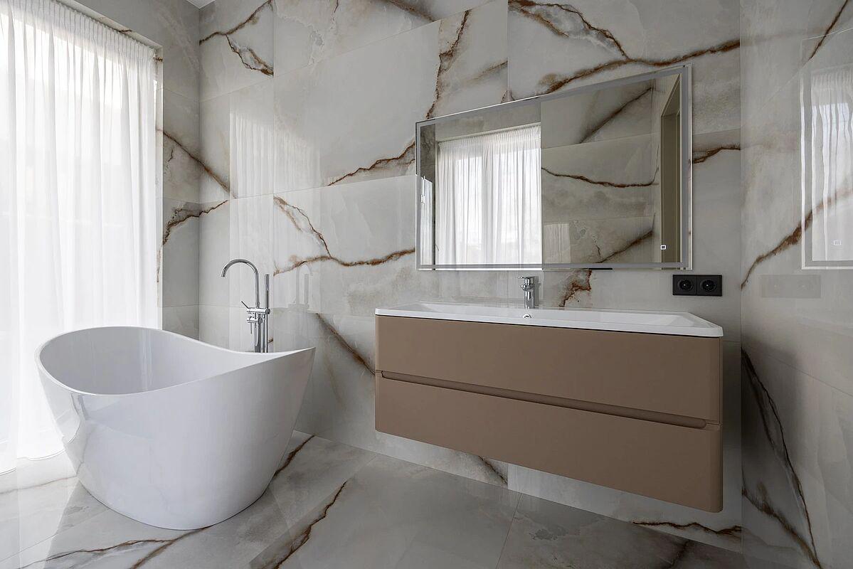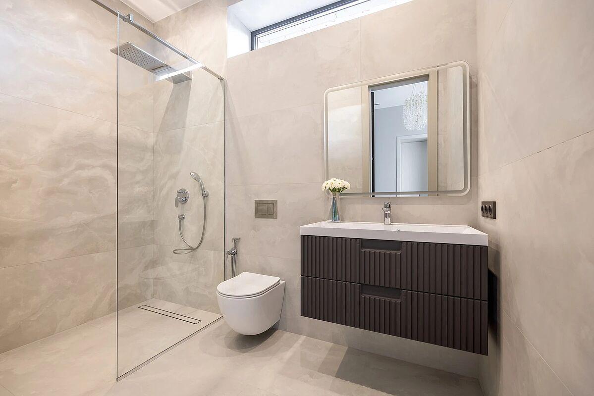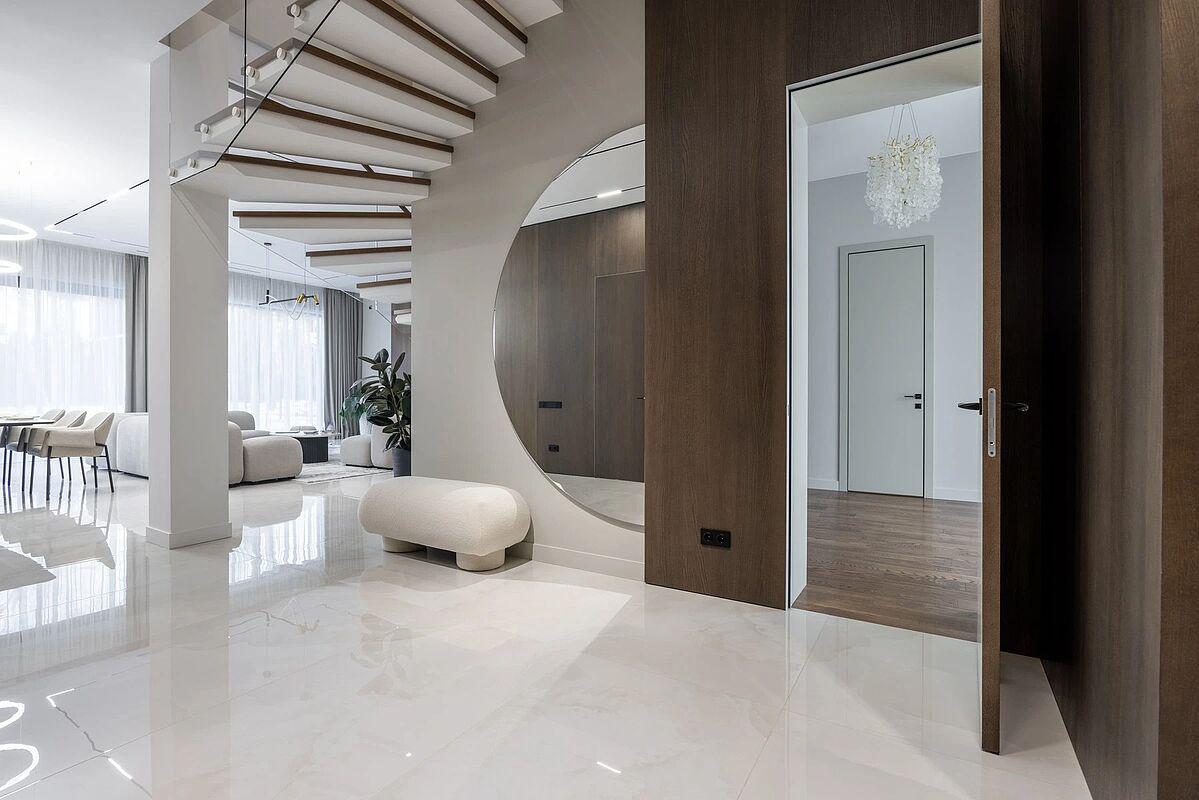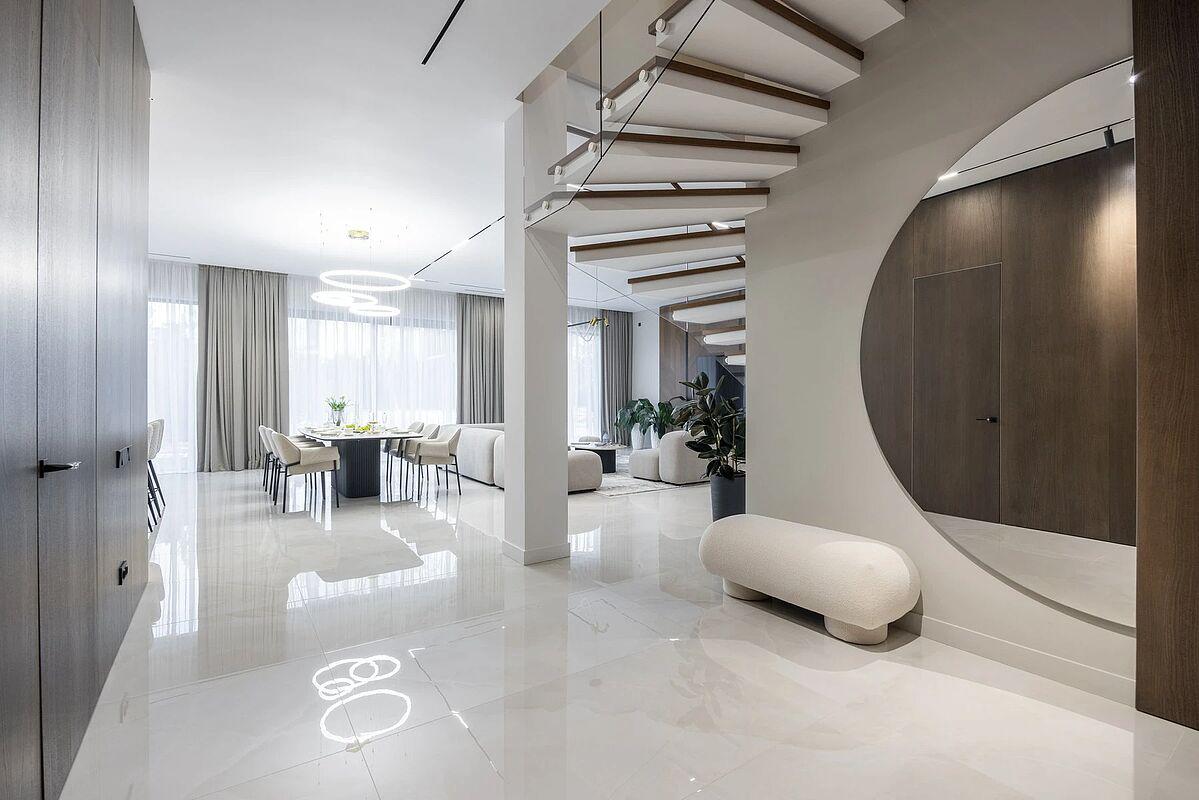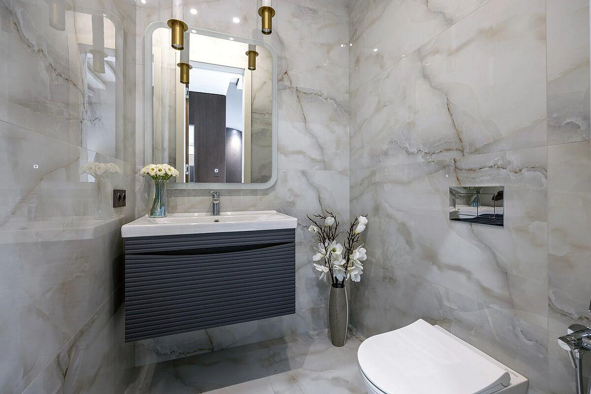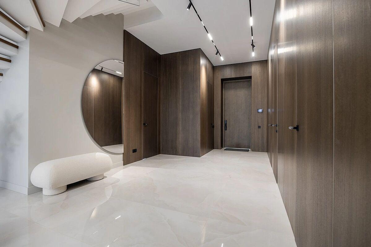 Кирпичный дом с дизайнерской отделкой под ключ. Материал стен - кирпич, фасад вентилируемый, выполнен из высококачественной лиственницы и керамогранита, прекрасно сохраняет тепло внутри дома и не требует обслуживания. В доме выполнена премиальная отделка в современном стиле, качественное панорамное остекление "от пола до потолка" и высокие потолки визуально увеличивают пространство, встроенные теплые полы, установлена премиальная встроенная техника и сантехника, дом укомплектован стильной мебелью и предметами декора.