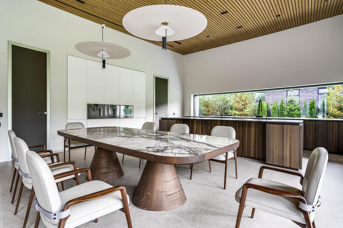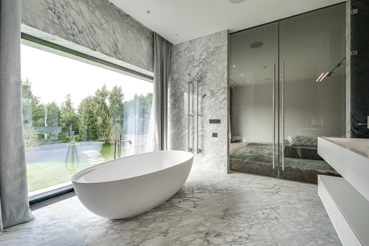 красивый панорамный бассейн с хаммамом и сауной, просторная гостиная с камином и выходом на участок, 4 спальни с ванными и гардеробными комнатами, кабинет, квартира для персонала и гараж на 3 машины. Установлена система умный дом с голосовым помощником Алиса. Вся инженерия, оборудование, отделочные материалы, техника и мебель от люксовых европейских брендов таких как Gaggenau, Baxter, Ulivi, сантехника Aquanet Jersey, двери Rimadesio, окна Schuco и т.д. В гараже установлена мойка и зарядка для электромобилей.