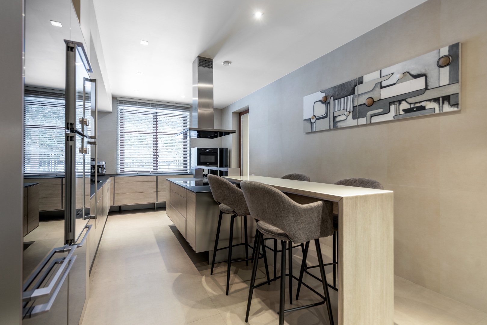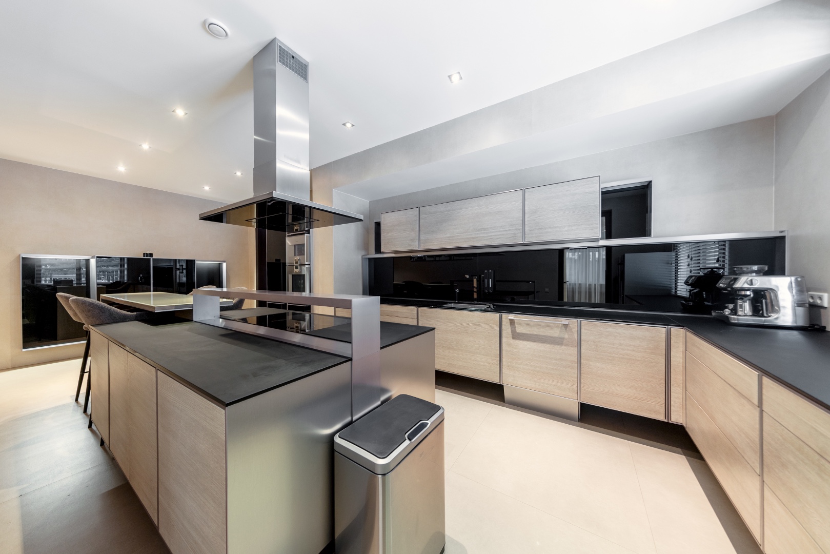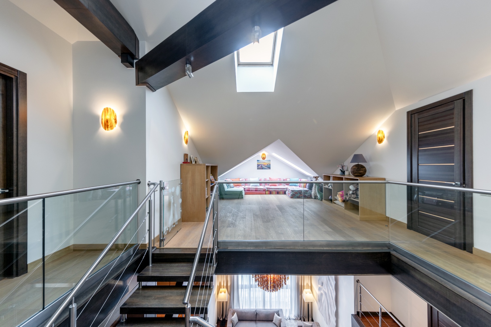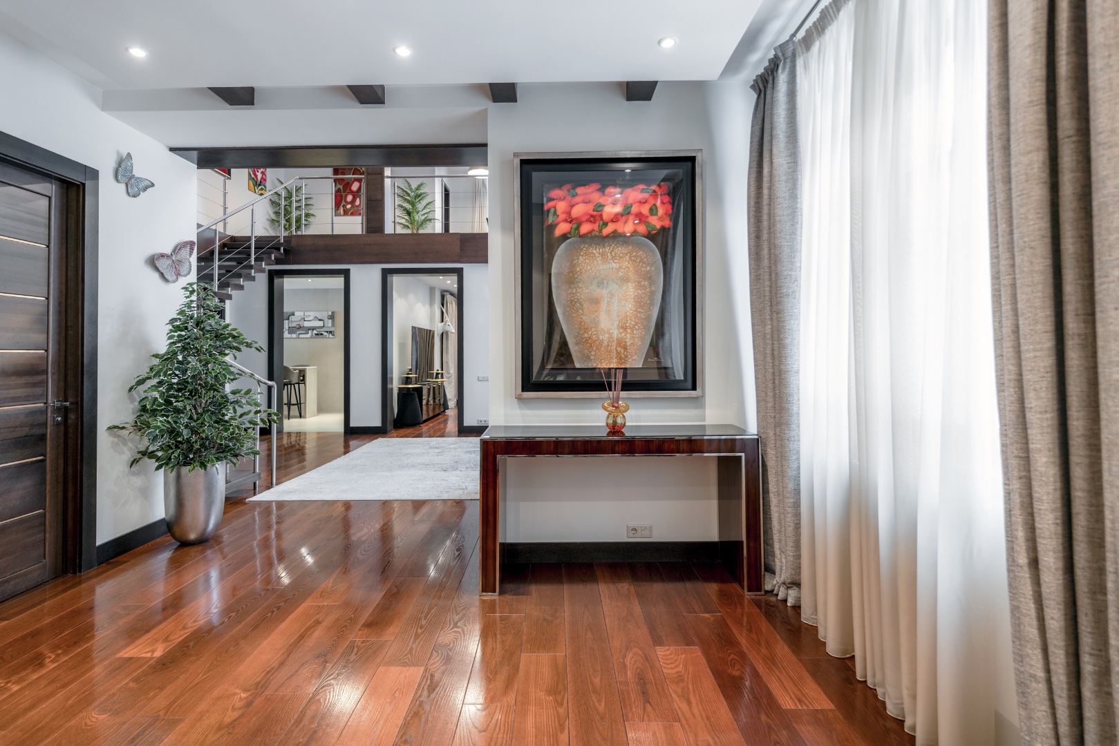 Эффектная «парящая» лестница, подчеркивающая современный стиль.