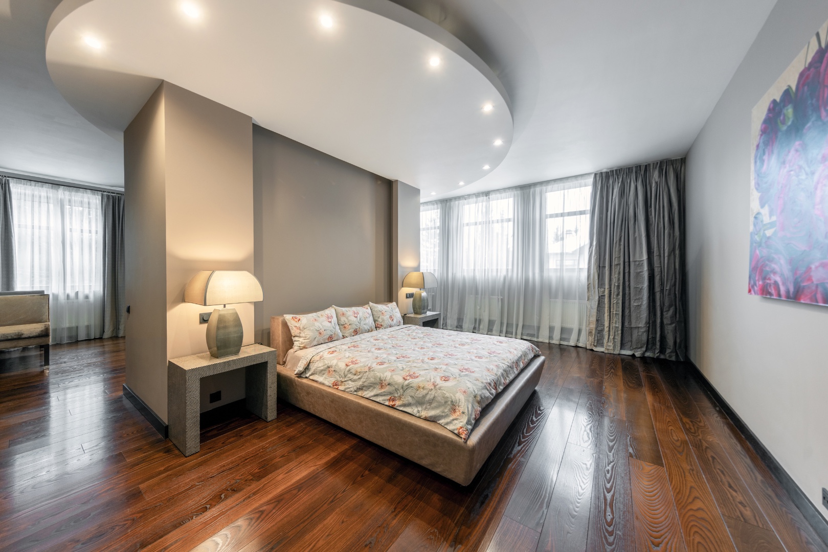 Мастер-зона с гардеробной, ванной и будуаром.