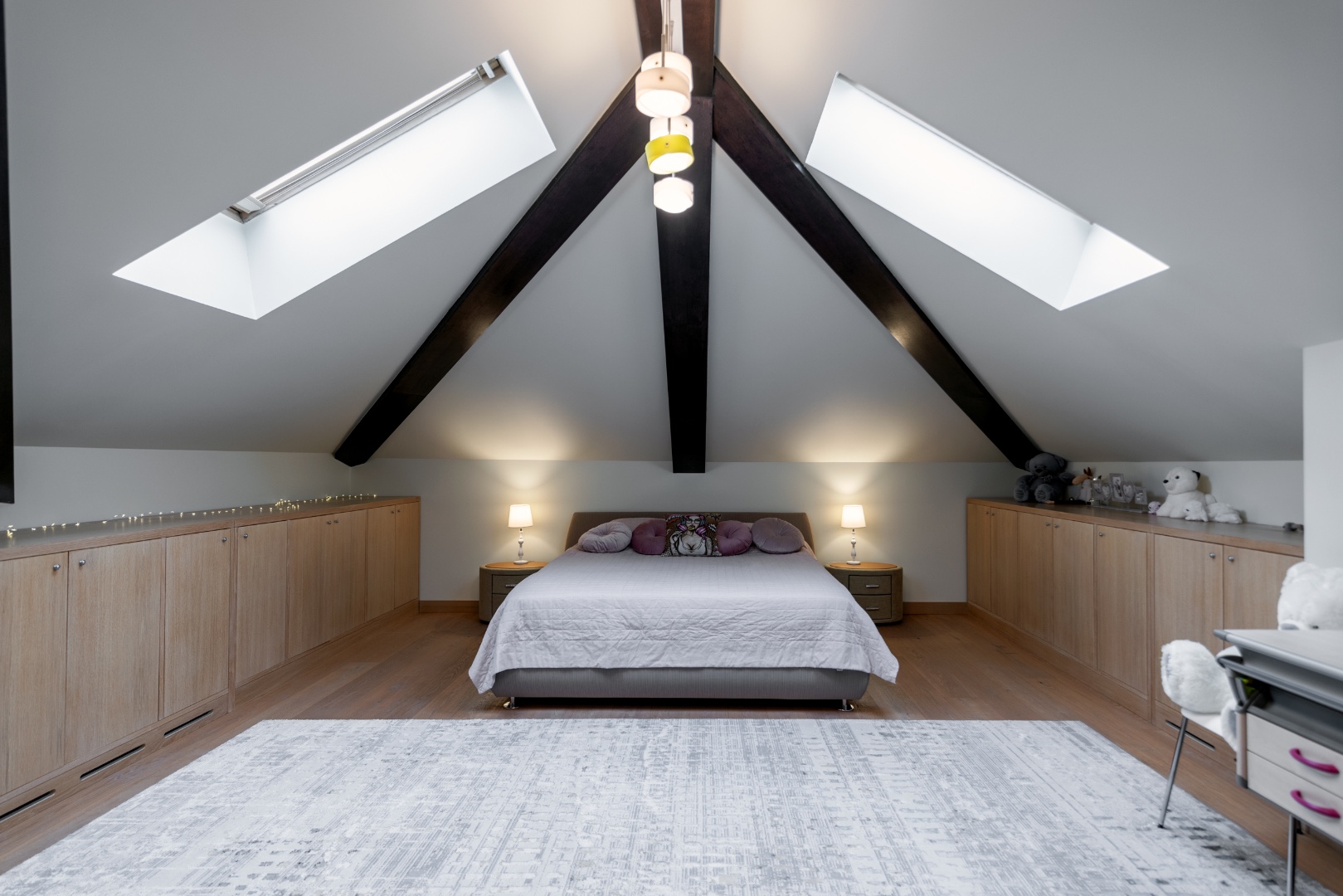 Мансарда: 3 детские спальни, кабинет, гардеробная, игровая-гостиная, с/у, учебная комната.