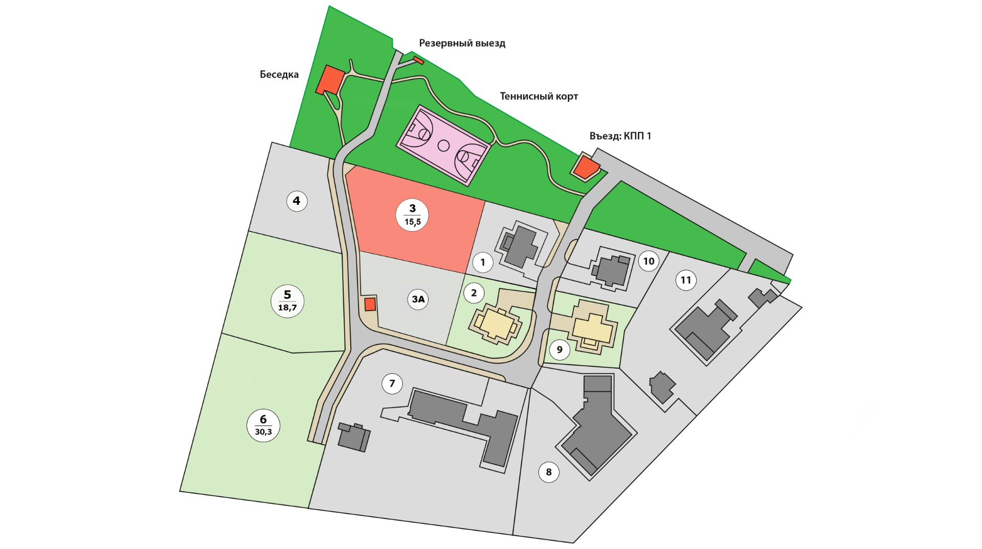 Закрытая территория, КПП, видеонаблюдение, освещение, клубный дом.
