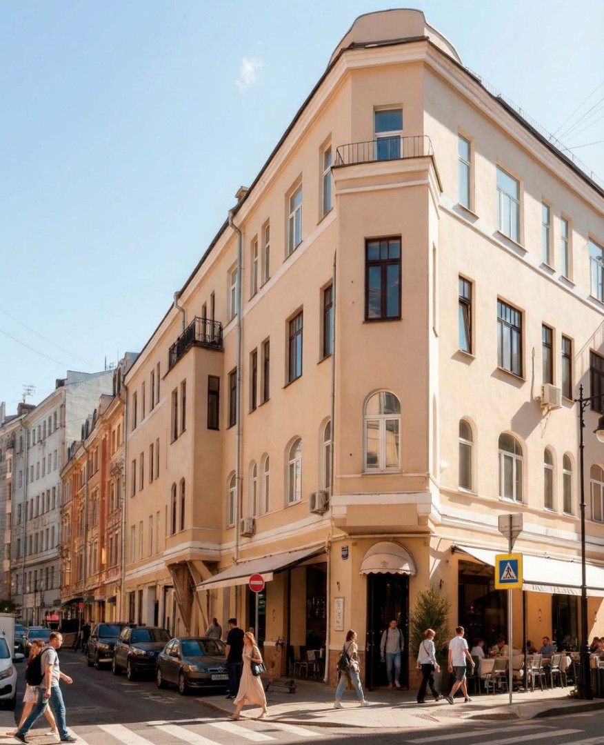 Один из самых престижных районов Москвы с уникальной атмосферой исторического центра. 2 минуты до Патриарших прудов, 11 минут до метро «Маяковская».