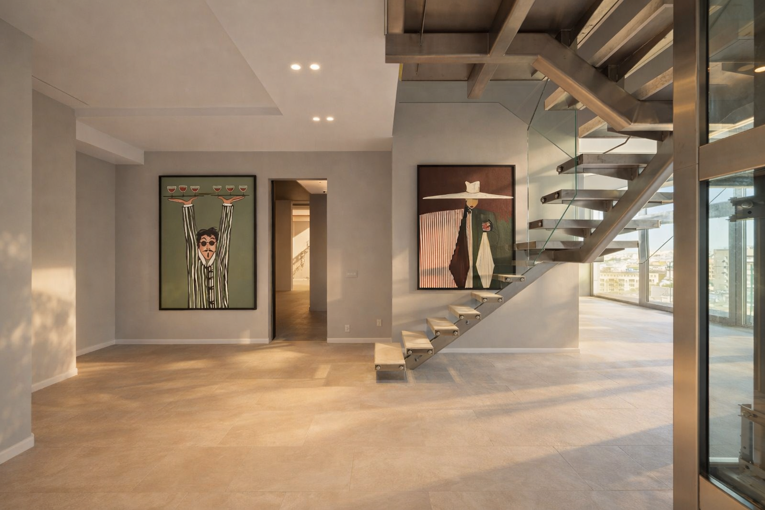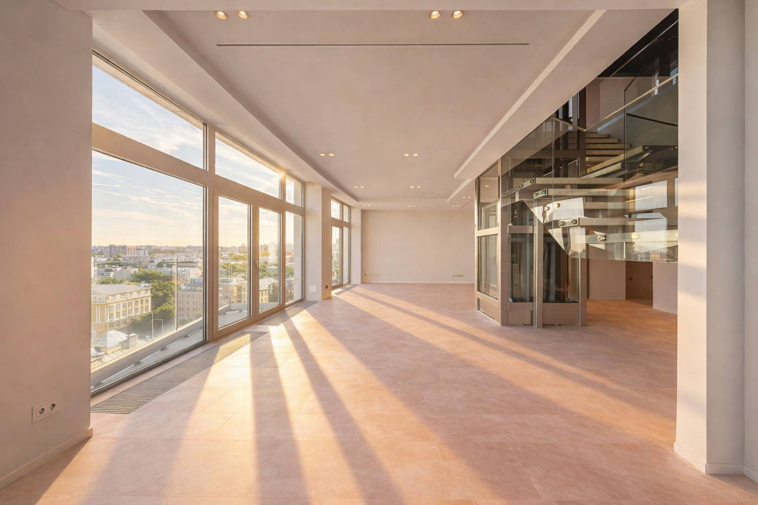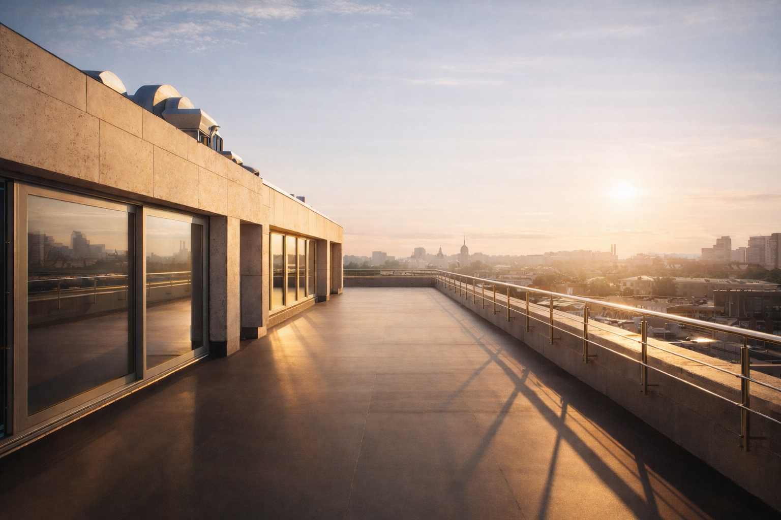 Резиденция с собственной террасой более 50 м² и личным выходом на эксплуатируемую кровлю открывает возможности для отдыха и приема гостей. Панорамное остекление обеспечивает захватывающие виды на две стороны и наполняет пространство естественным светом в течение всего дня.