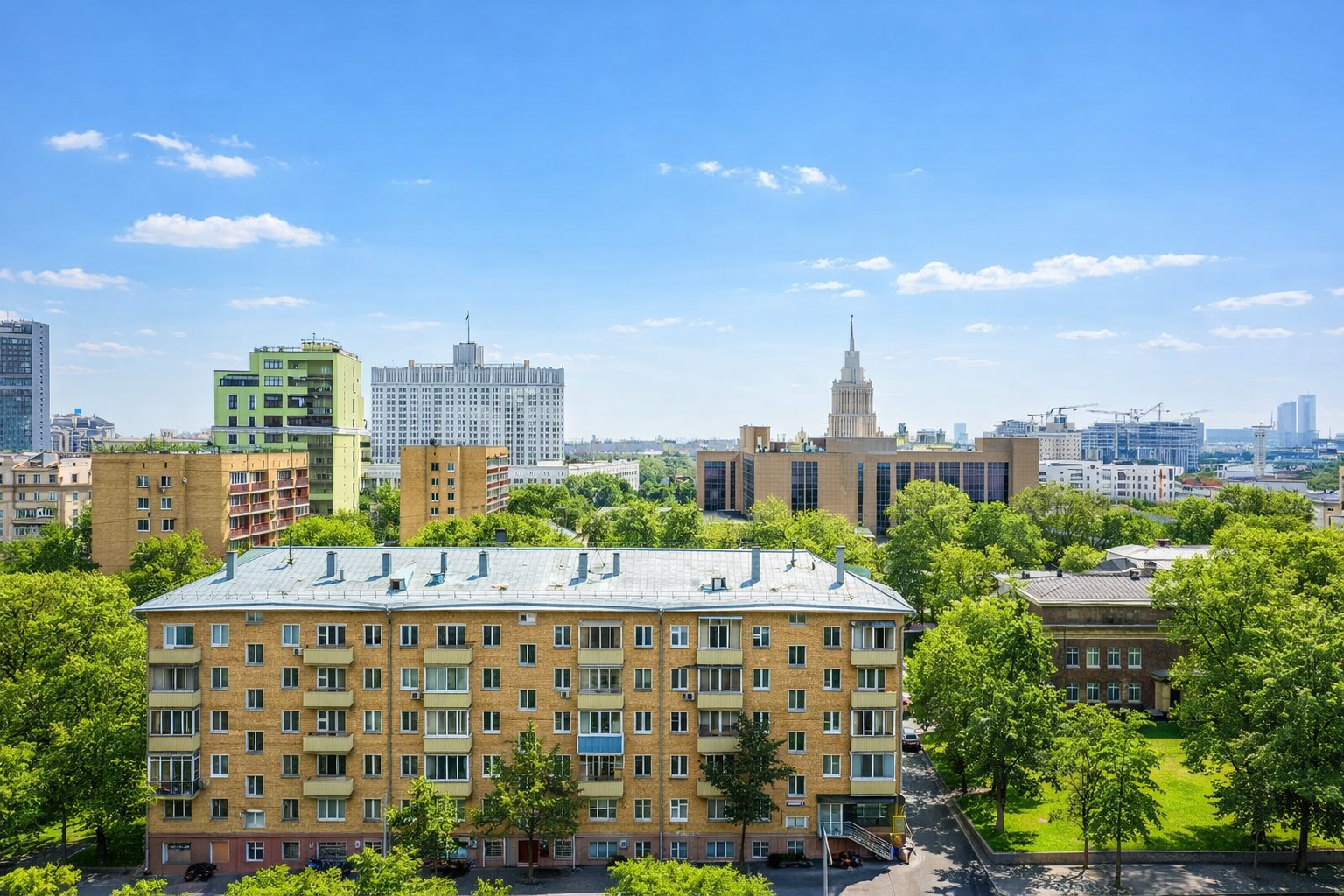 Панорамные окна открывают живую открытку Москвы — район Пресня как на ладони.